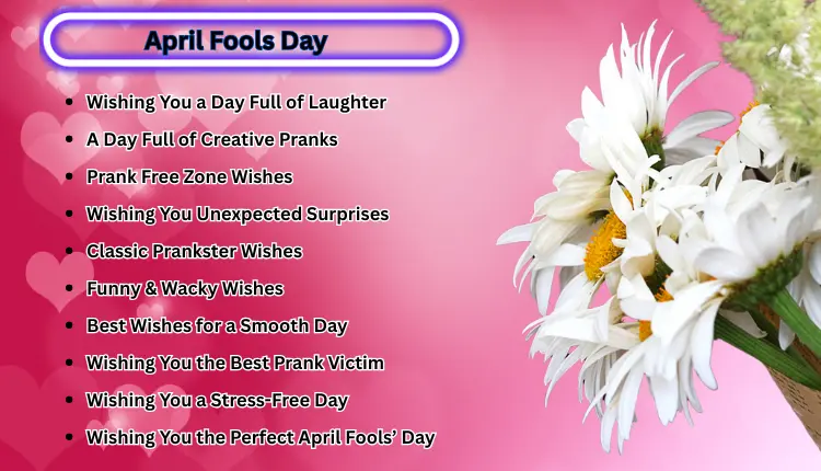 April Fools’ Day is a time to embrace the joy of laughter, surprises, and harmless fun. Whether you’re the one pulling off the pranks or the one getting tricked, the key is to make the day full of happiness and light-hearted moments. These 100 unique wishes are designed to add a little extra cheer and creativity to your April Fools’ Day celebrations. So go ahead, have fun, share these wishes, and make this day unforgettable with lots of laughter, clever pranks, and silly surprises! Remember, it’s all about having fun, spreading smiles, and enjoying the playful spirit of the day. Happy April Fools’! ๐Ÿ˜„๐ŸŽ‰